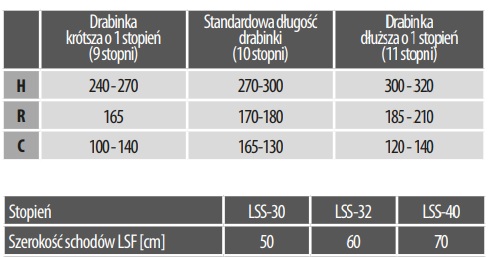 1 stopień przedłuża drabinkę nożycową schodów LSFdo wysokości pomieszczenia h-320 m