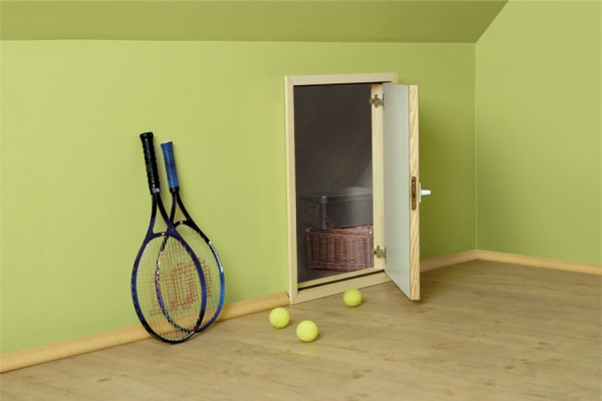 - Drzwiczki umożliwiają dostęp do pomieszczenia nieużytkowego znajdującego się za ścianą kolankową a jednocześnie stanowią doskonałą barierę termoizolacyjną (współczynnik przenikania ciepła U=0,6W/m2K) i gwarantują zachowanie wysokiej szczelności.