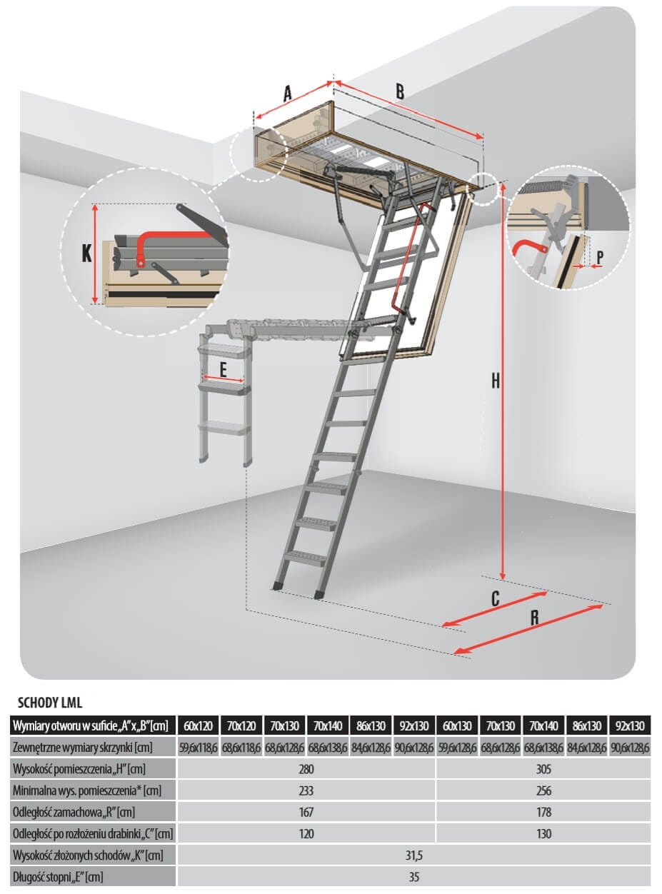 Schody segmentowe LML to segmentowe schody strychowe, z metalową drabinką, które zaprojektowano w celu zapewnienia najwyższego komfortu użytkowania oraz obsługi przy jednoczesnym uproszczeniu procesu montażu i regulacji długości drabinki do wysokości pomieszczenia.