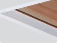 Schody nożycowe standardowo wyposażone są w białą klapę termoizolacyjną. Zewnętrzna powierzchnia klapy jest gładka. Na jej powierzchni nie są widoczne żadne elementy montażowe.