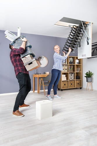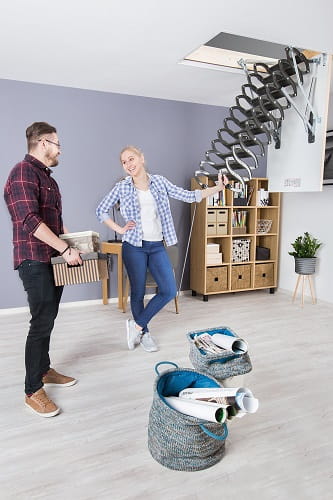 - Zastosowany mechanizm odciążeniowy klapę znacznie ułatwia obsługę schodów.