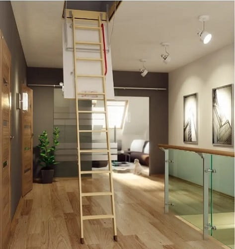 - Stopnie antypoślizgowe oraz znaczne odsunięte drabinki od klapy schodów dodatkowo ułatwiają poruszanie się po nich.
