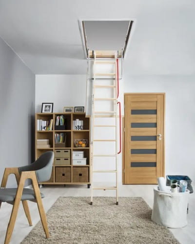 - niewielka odległość od ostatniego stopnia do podłogi na poddaszu;