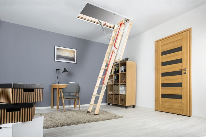- niewielka waga oraz zaczepianie klapy na tzw. klik usprawniają i przyspieszają montaż schodów w stropie;